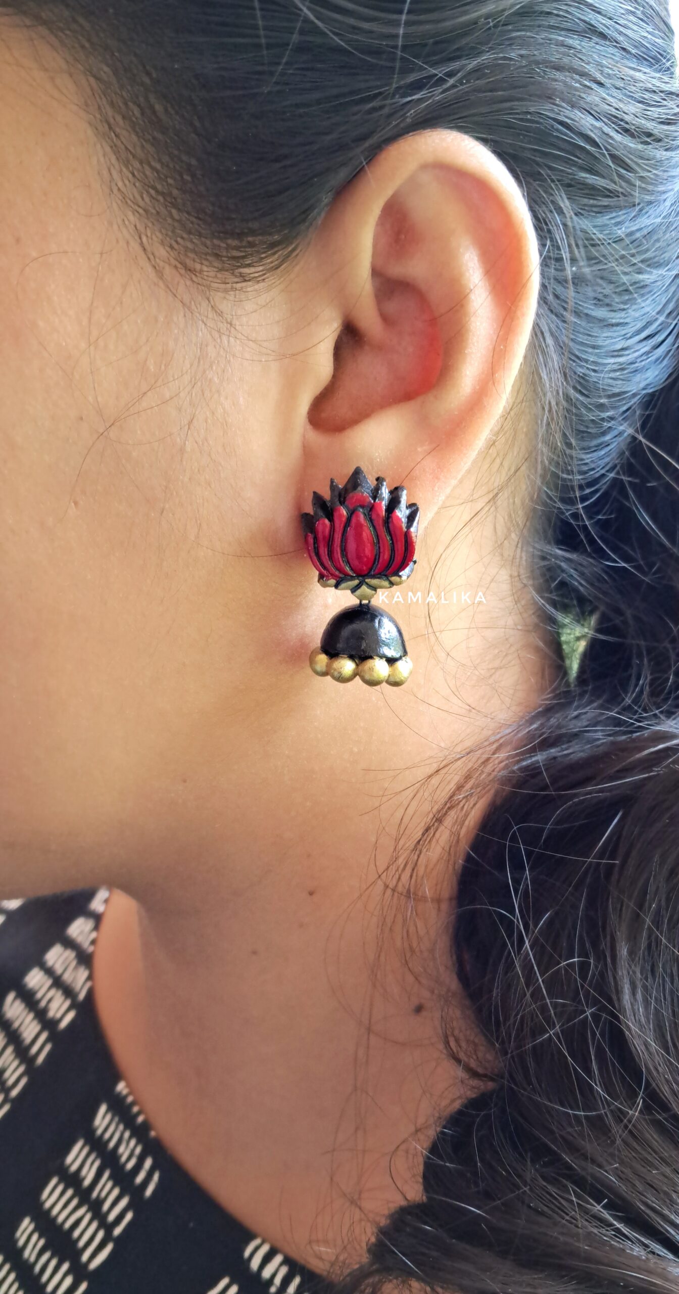This terracotta jewelry piece is molded from natural clay and hand-painted with care. Its rustic tones and tribal designs make it a perfect accessory for ethnic wear and cultural celebrations.