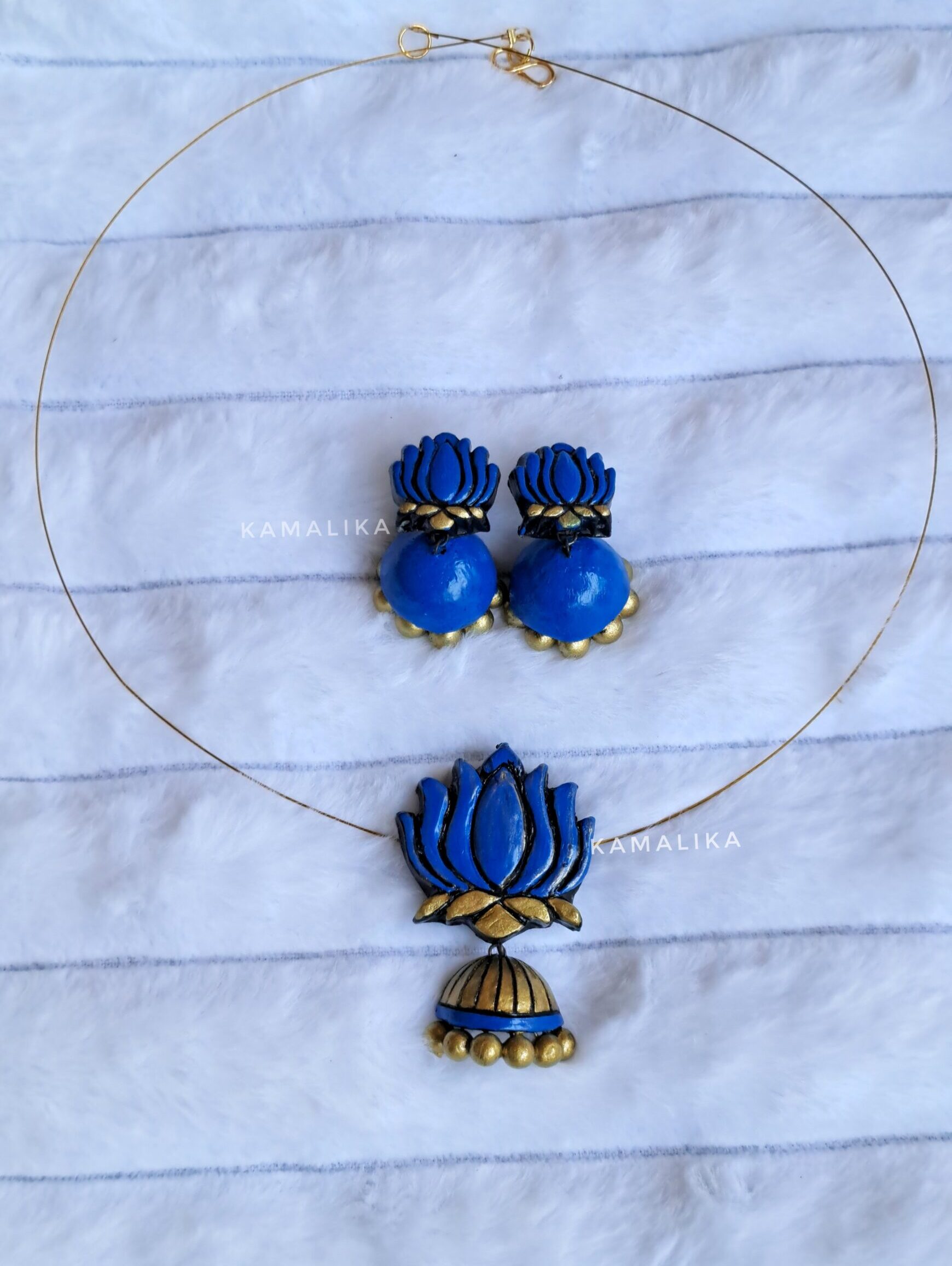 This terracotta jewelry piece is molded from natural clay and hand-painted with care. Its rustic tones and tribal designs make it a perfect accessory for ethnic wear and cultural celebrations.