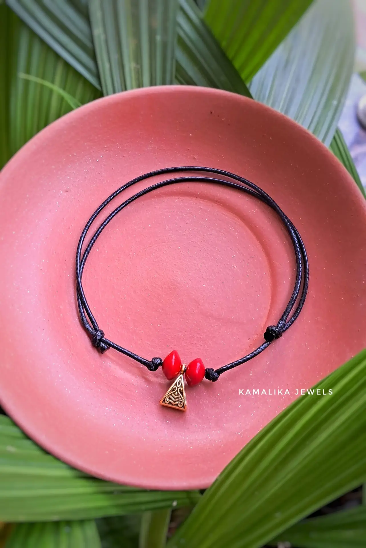 • Material – Natural Manjadi Seeds, Charm and Black Wax Thread